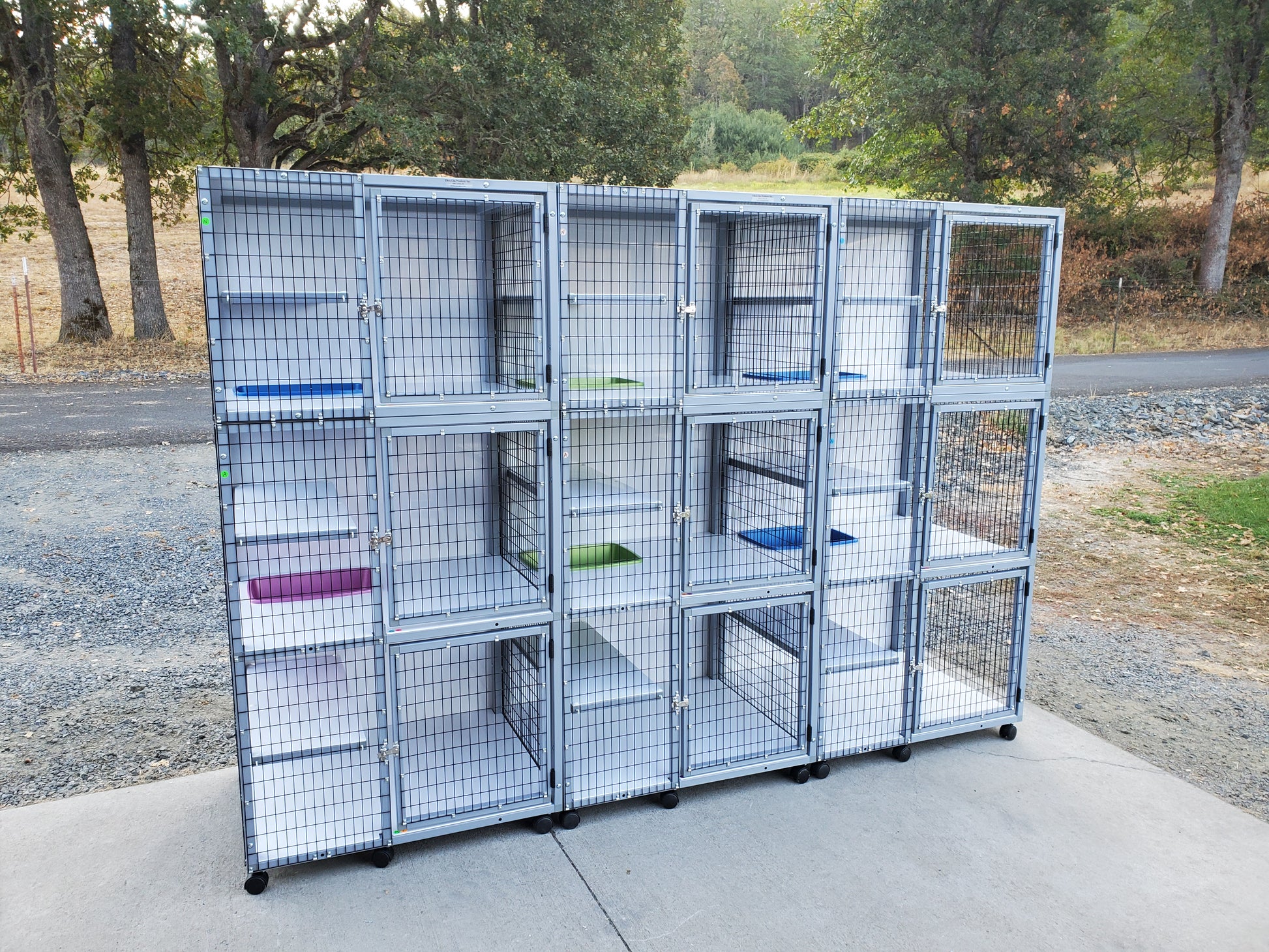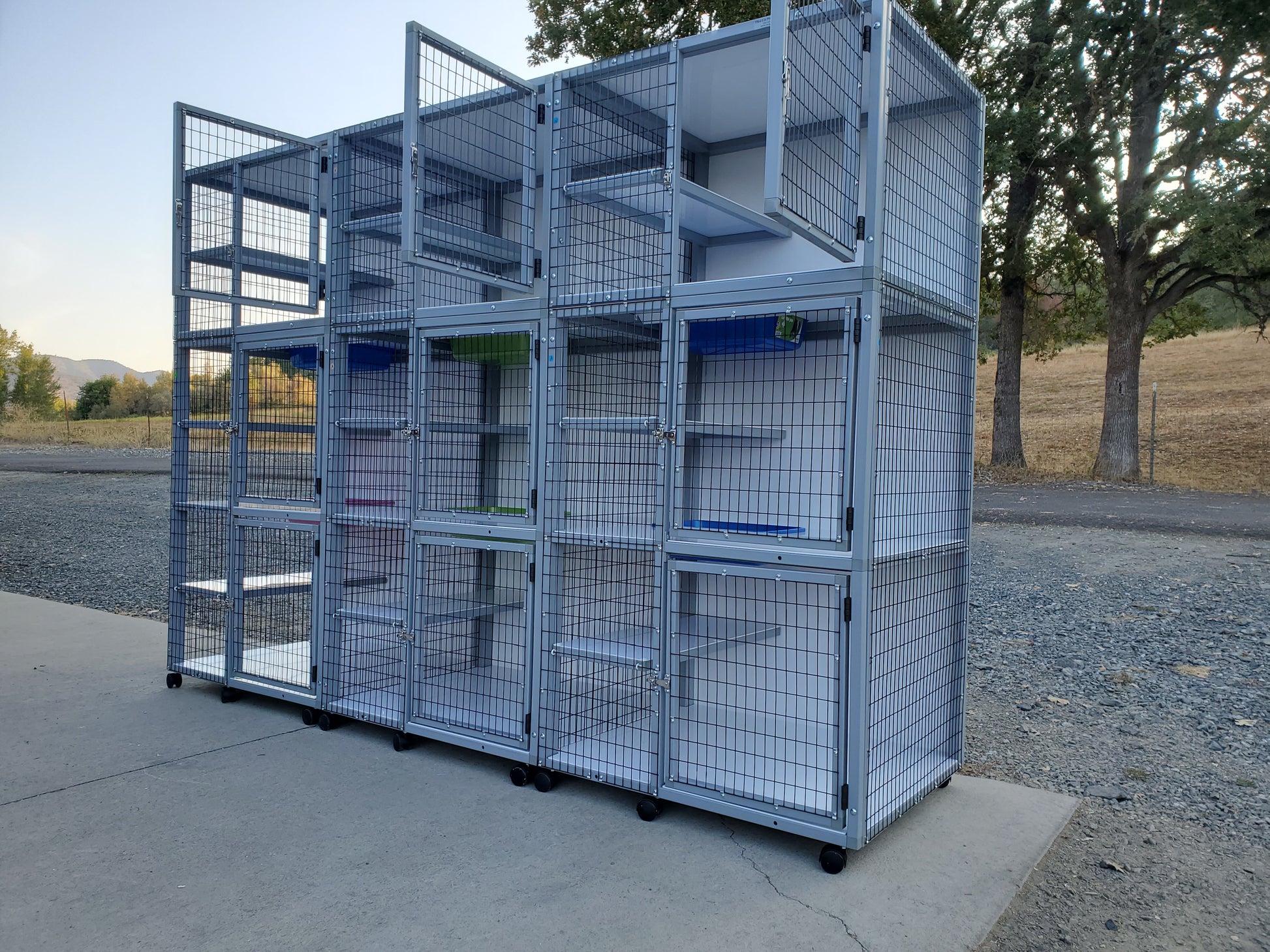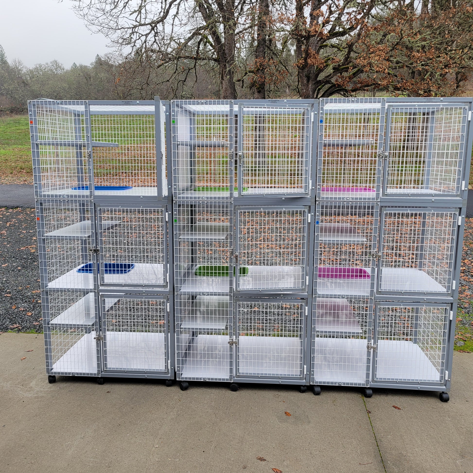 Can be modified to have solid vertical dividers, solid sides, backs, tops. Whatever you need! Can have litter guards installed as well! Also can be made to use as 3 separate 3 story units if needed.
