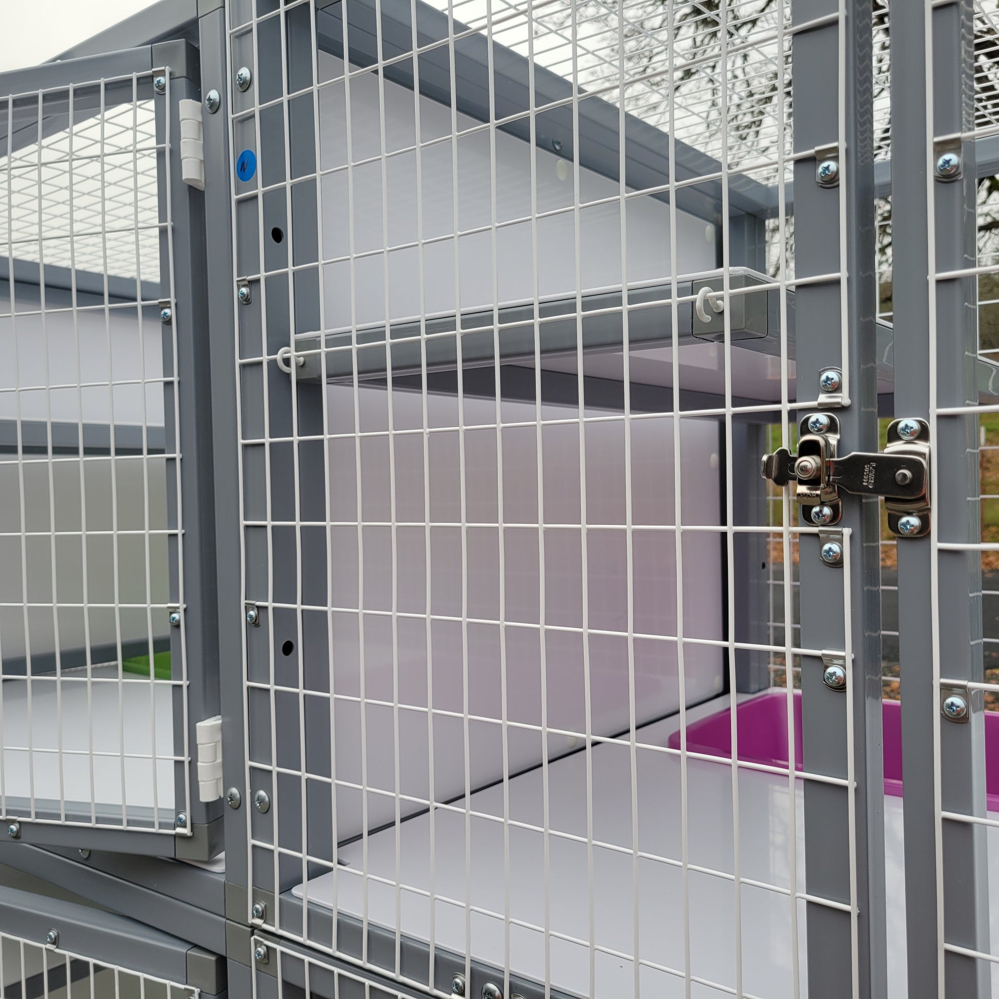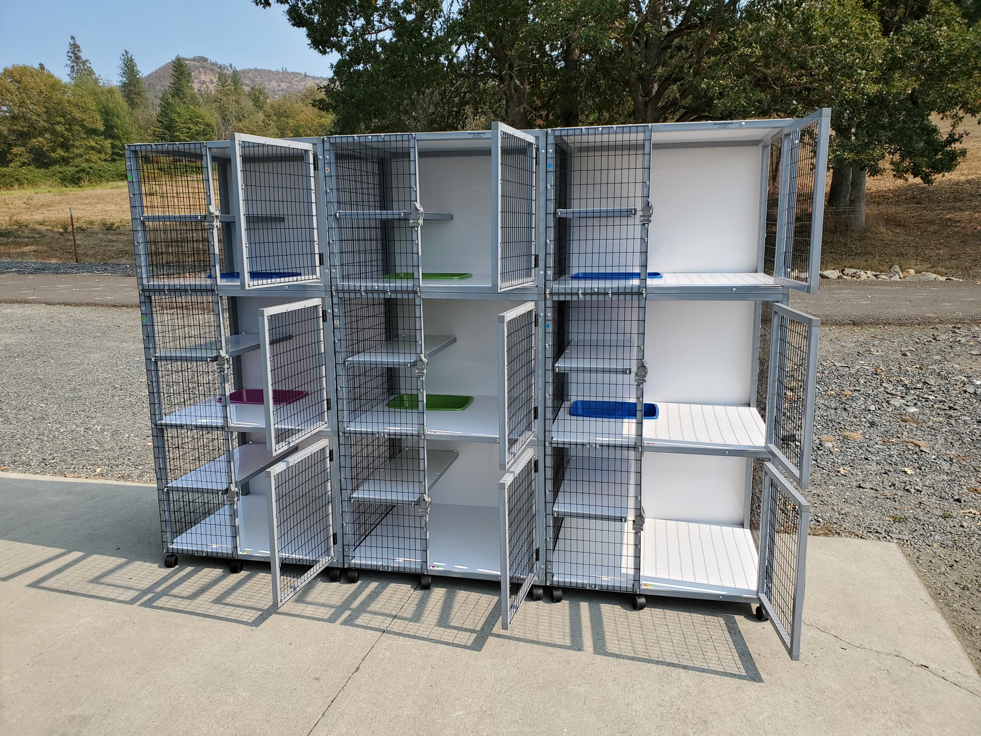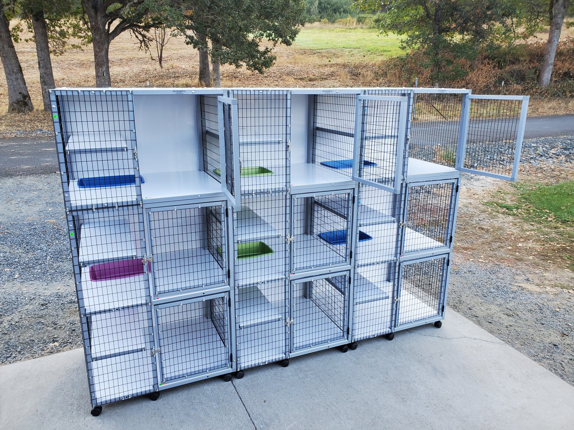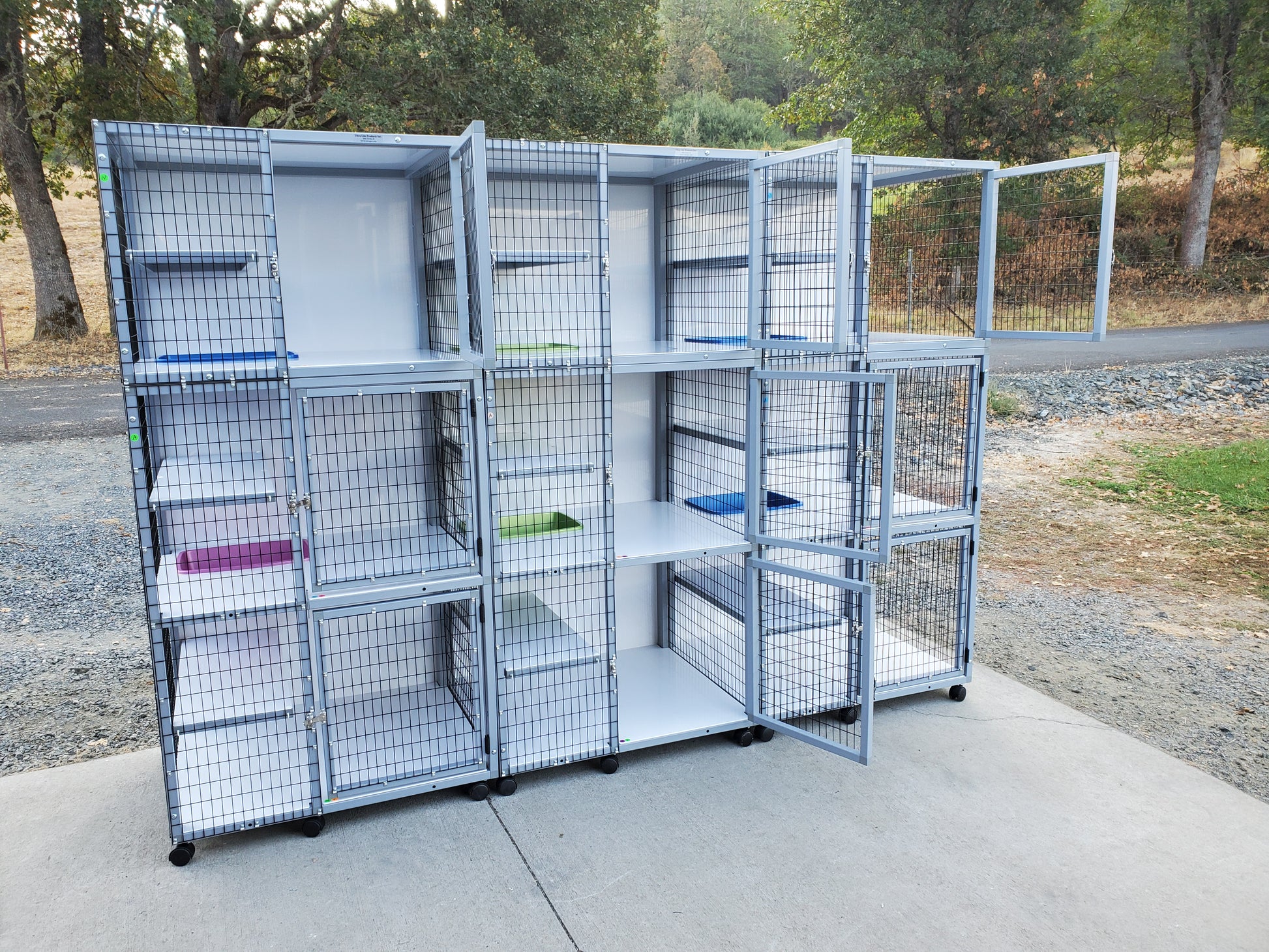 Can be modified to have solid vertical dividers, solid sides, backs, tops. Whatever you need! Can have litter guards installed as well! Also can be made to use as 3 separate 3 story units if needed.