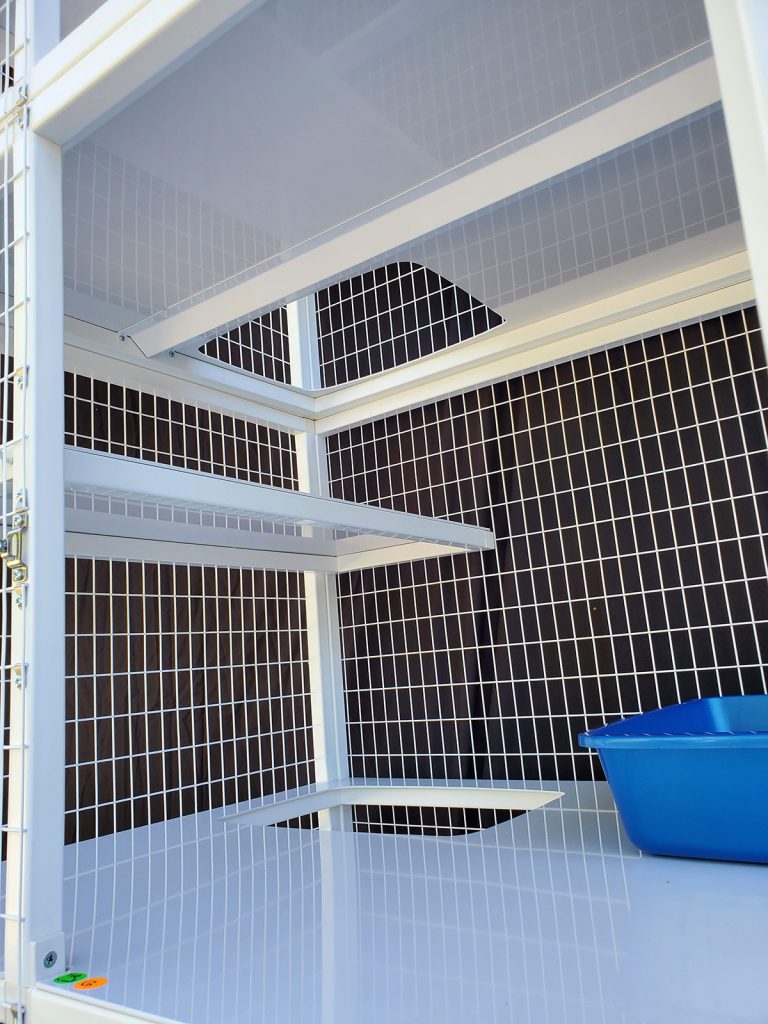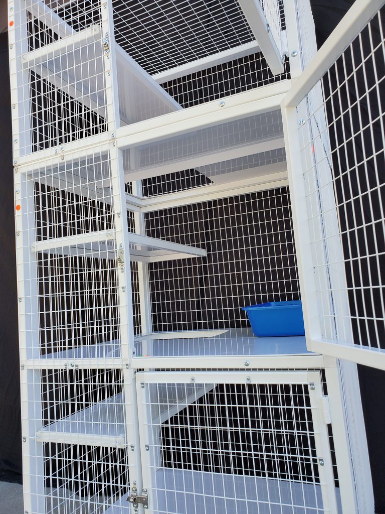 This unit is one of our most versatile enclosures! It can be one, two or three separate units by simply removing the recessed litter pans between each level.